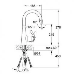 Mitigeur GROHTHERM 1000 Grohe avec ensemble de douche Tempesta – 34557-001