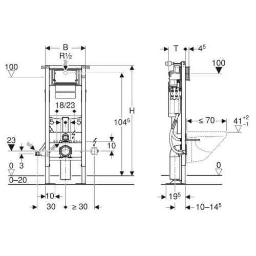 - Pour WC suspendus avec dimensions de raccordement selon EN 33:2011
