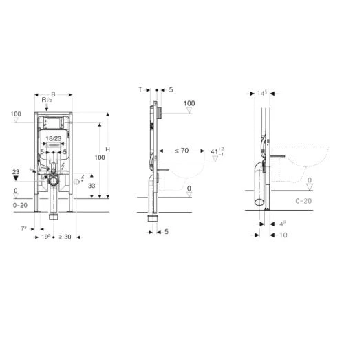 - Pour WC suspendus avec dimensions de raccordement selon EN 33:2011