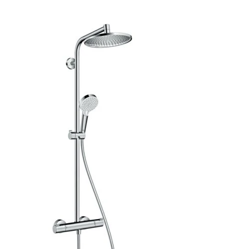 Cet ensemble de douches CROMETTA S 240 de la marque Hansgrohe est composĂ© d’une barre de douche, d’un mitigeur thermostatique, d’une douche de tĂŞte, une douchette Ă main, un flexible et un curseur. Il possède ainsi 2 nombre de sorties qui engendrent 2 fonctions. Premièrement, il y a la douche de tĂŞte orientable avec rotule produisant un jet RainAir. Ensuite, il y a la douchette qui produit un jet Rain et un jet IntenseRain. L’ensemble convient au chauffe-eau instantanĂ© et possède un limiteur d’eau chaude rĂ©glable. En outre, Son l’angle d’inclinaison coulissant est ajustable sur 45°.