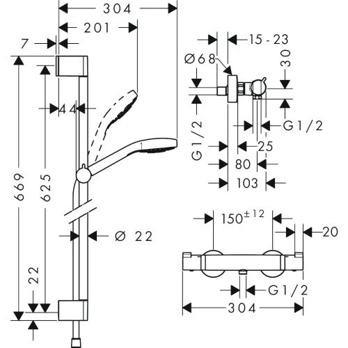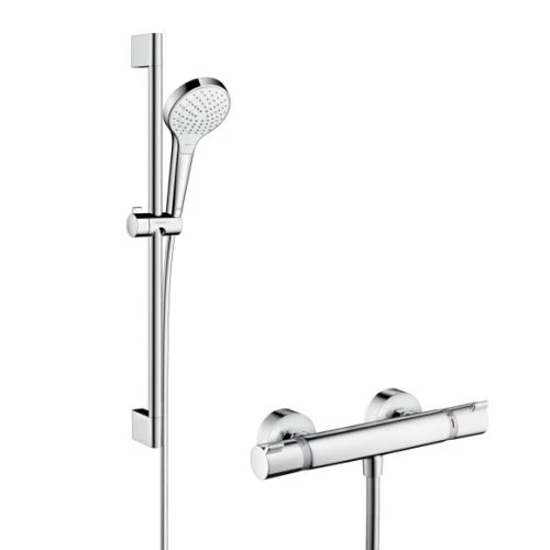 Ce combi douche CROMA SELECT S Vario de la marque Hansgrohe comprenant une douchette, mitigeur thermostatique, une barre ronde, un curseur et une flexible de douche avec un Ă©crou tournant cĂ´tĂ© douchette Ă©vitant la torsion du flexible. En plus, pour plus de praticitĂ©, son l’angle d’inclinaison coulissant est ajustable sur 45°. En outre, pour changer de jet, il suffit d’appuyer sur le bouton Select.