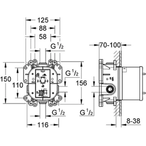 Ce corps encastrĂ© RAPIDO E de la marque Grohe est idĂ©al autant pour un mitigeur monocommande de douche que de bain. PrĂ©montĂ©e et testĂ©e, cette unitĂ© est facile et sĂ»re Ă installer. En plus, il a un boĂ®tier d’encastrement stable avec un couvercle de protection. Par ailleurs, il possède nombreux points de fixation pour une pose en applique, par l’arrière d’une cloison ou en cloison lĂ©gère.