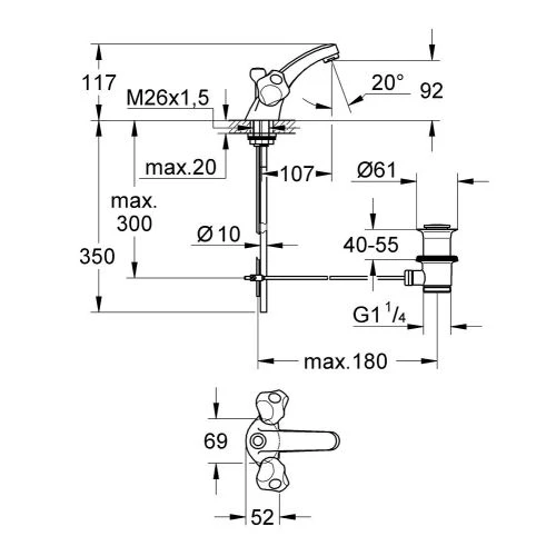- Mélangeur de bidet / lave-mains bicommande monotrou