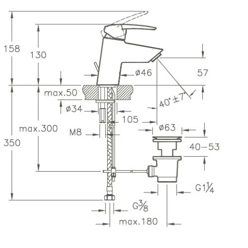 - Hauteur : 130 / 158 mm