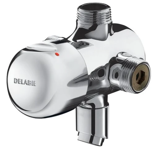 Ce mitigeur de lavabo mural de la marque Delabie possède un écoulement temporisé. Il est intégré de filtre et de clapet antiretour. Le réglage de sa température et de son déclenchement se fait sur le croisillon.