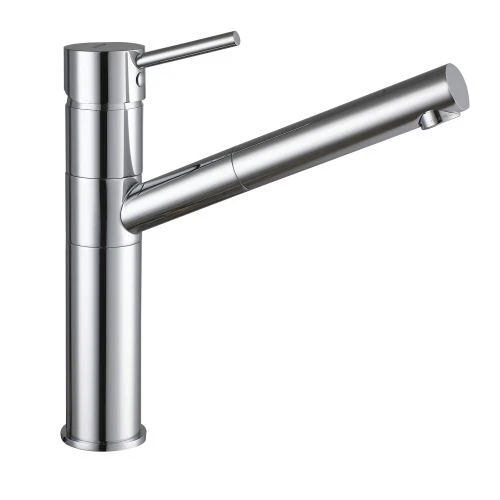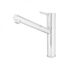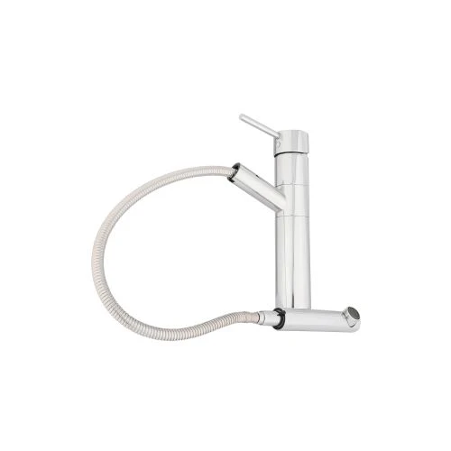 Mitigeur pour évier avec douchette extractible et bec orientable.