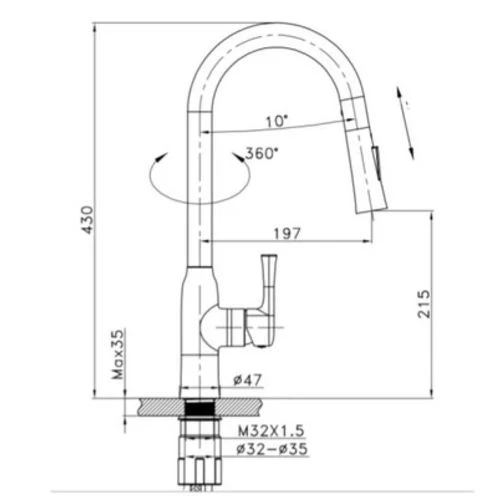 - Bec mobile pour un rinçage efficace de votre simple ou double cuve évier