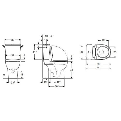 Ce pack de WC au sol semi-carĂ©nĂ© Geberit Prima est idĂ©al pour les espaces rĂ©duits grâce Ă sa dimension peu encombrant. Il se compose d’une cuvette courte Ă sortie : horizontale, latĂ©rale ou verticale (selon raccord choisi), d’un rĂ©servoir rĂ©versible Ă©quipĂ© d’un mĂ©canisme silencieux double-chasse 3/6 l Ă bouton poussoir chromĂ© et Ă fixations rapides. En plus, il a une couvercle d’abattant recouvrant.
