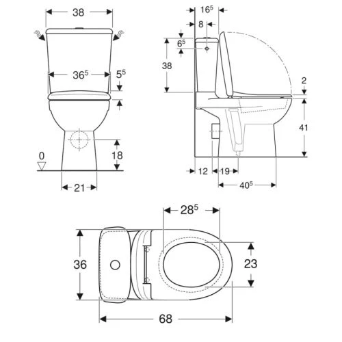 - Pack WC au sol PRIMA 6 avec cuvette Ă fond creux, rĂ©servoir attenant et couvercle d’abattant recouvrant