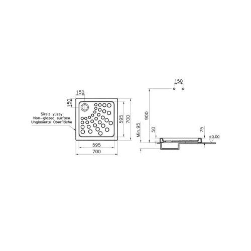 - Receveur carré ARKITEKT extra plat avec 3 faces emmaillé