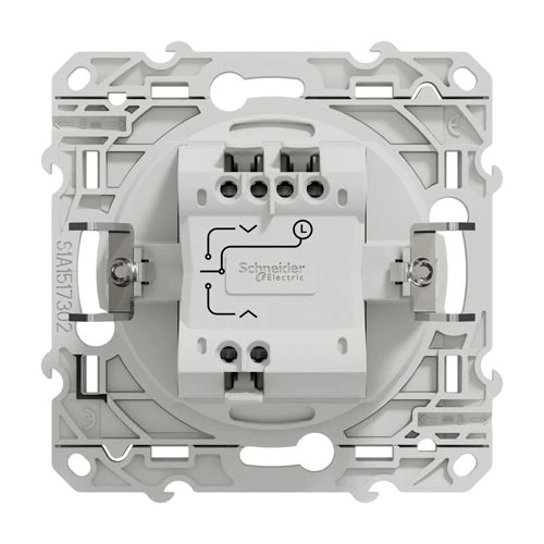 L’interrupteur ou bouton-poussoir pour volet roulant est de marque Schneider. Le câblage du produit est facile grâce au repérage des bornes. De plus, cet appareil possède un mécanisme muni d’un système qui permet de passer de la fonction va-et-vient à la fonction poussoir.